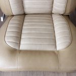 The tan toned vinyl combination is of a very close and decent match to the factory Chrysler vinyl. We opted for a Ford “kiwi light saddle” roebuck vinyl for the outer, and Holden HJ “long grain” for the seats’ pleated inserts. The end result is so very vibrant and looks sun-kissed.