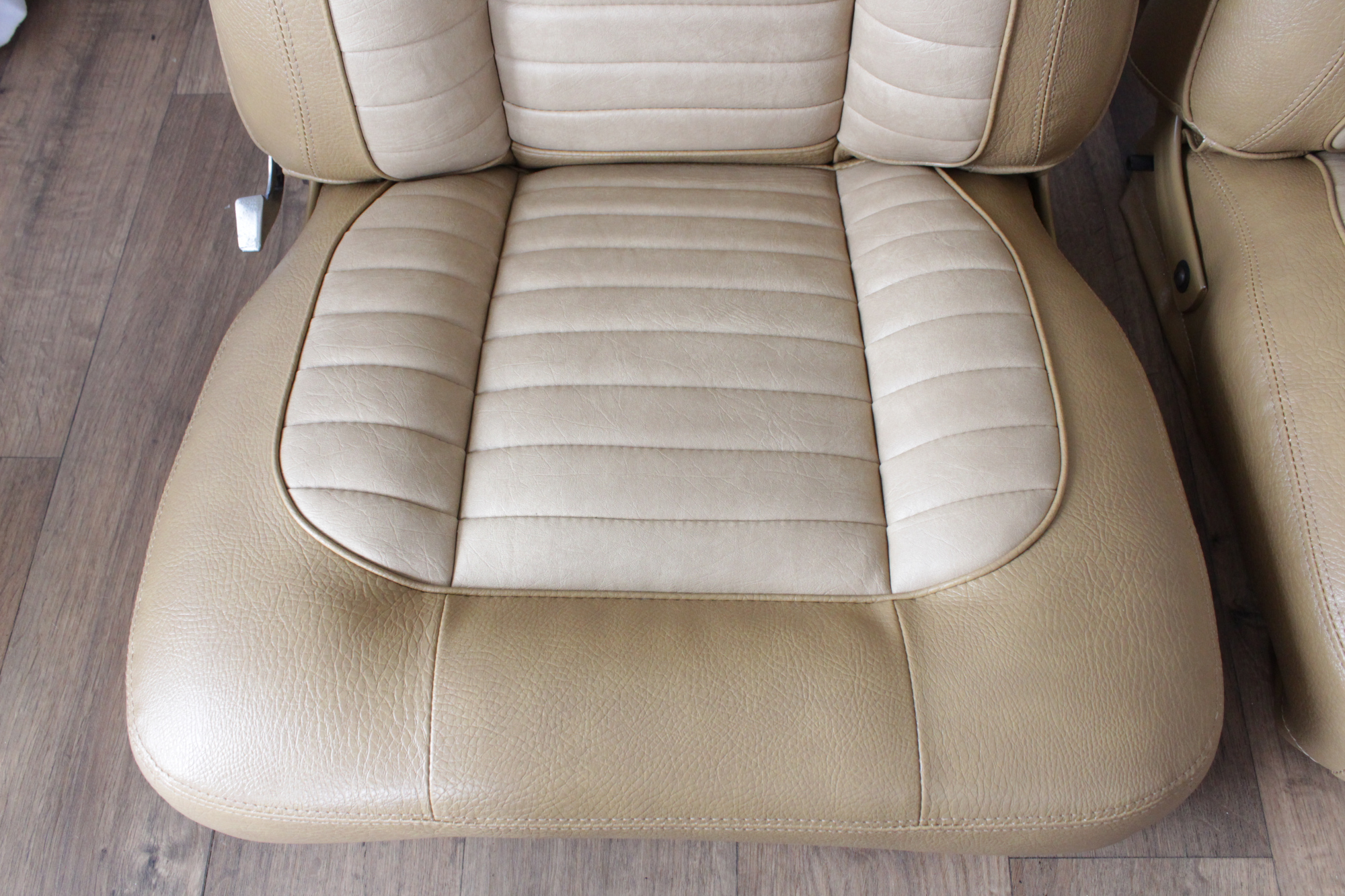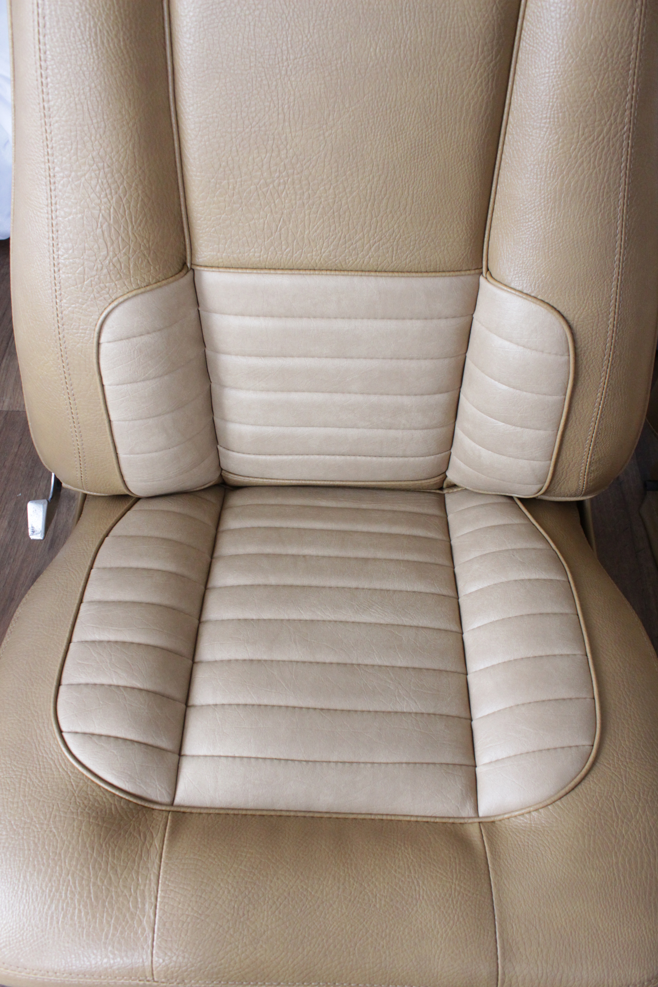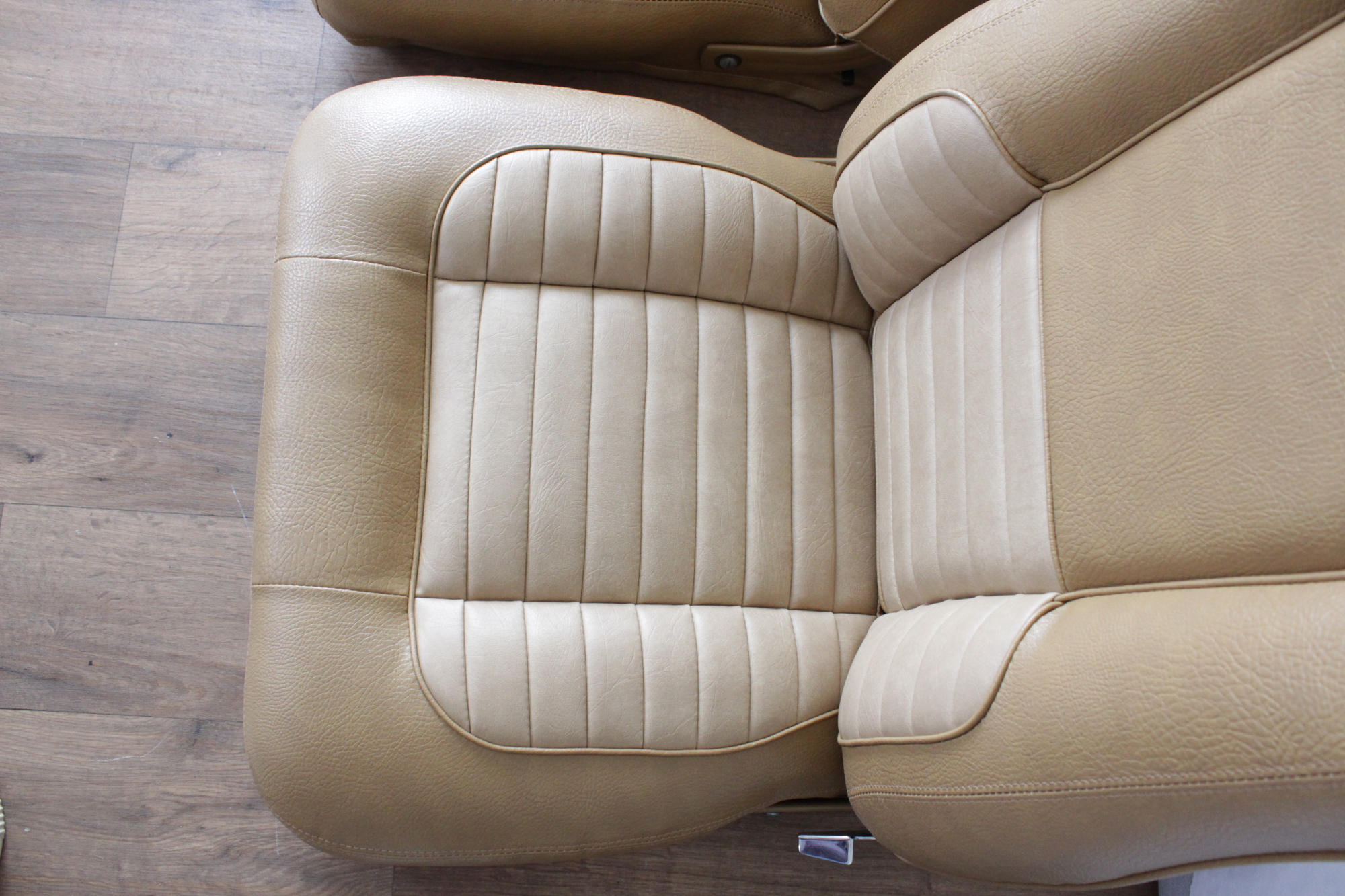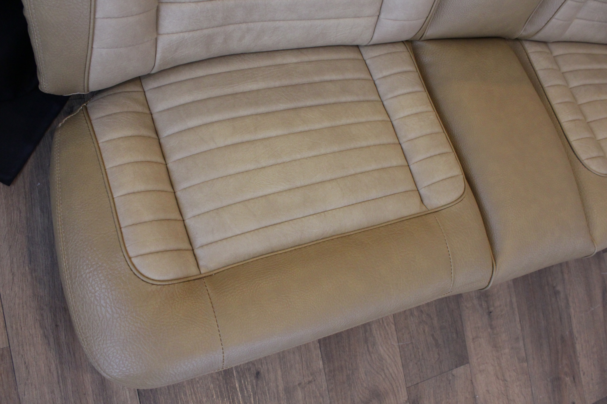 The tan toned vinyl combination is of a very close and decent match to the factory Chrysler vinyl. We opted for a Ford “kiwi light saddle” roebuck vinyl for the outer, and Holden HJ “long grain” for the seats’ pleated inserts. The end result is so very vibrant and looks sun-kissed.